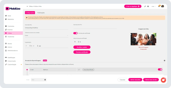 Com a plataforma LMS da Mobiliza, você tem liberdade total para automatizar processos como: