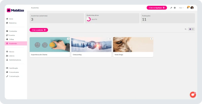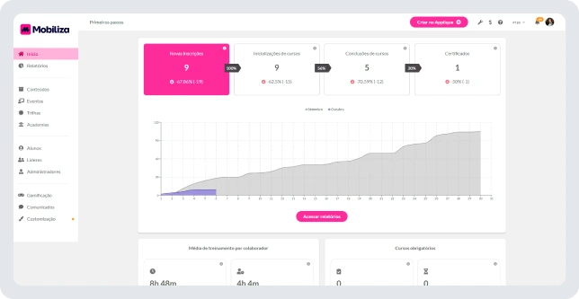 Com a plataforma LMS da Mobiliza, você simplifica a gestão dos treinamentos na sua empresa, engaja as equipes e monitora resultados com relatórios robustos.